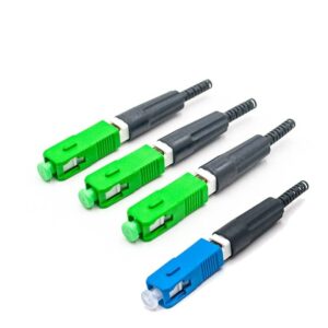 El conector rápido es un dispositivo que permite terminar la fibra óptica sin necesidad de empalmadora, facilitando instalaciones rápidas en campo. Se utiliza comúnmente en acometidas domiciliarias y trabajos de mantenimiento. Este conector asegura una alineación precisa del núcleo de la fibra, minimizando la pérdida de señal.